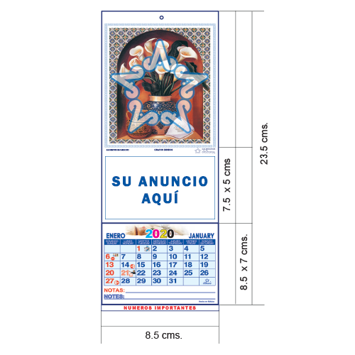 Mensual Bilingüe 8.5 x 7 cms. 3 1/2 x 2 3/4 ”